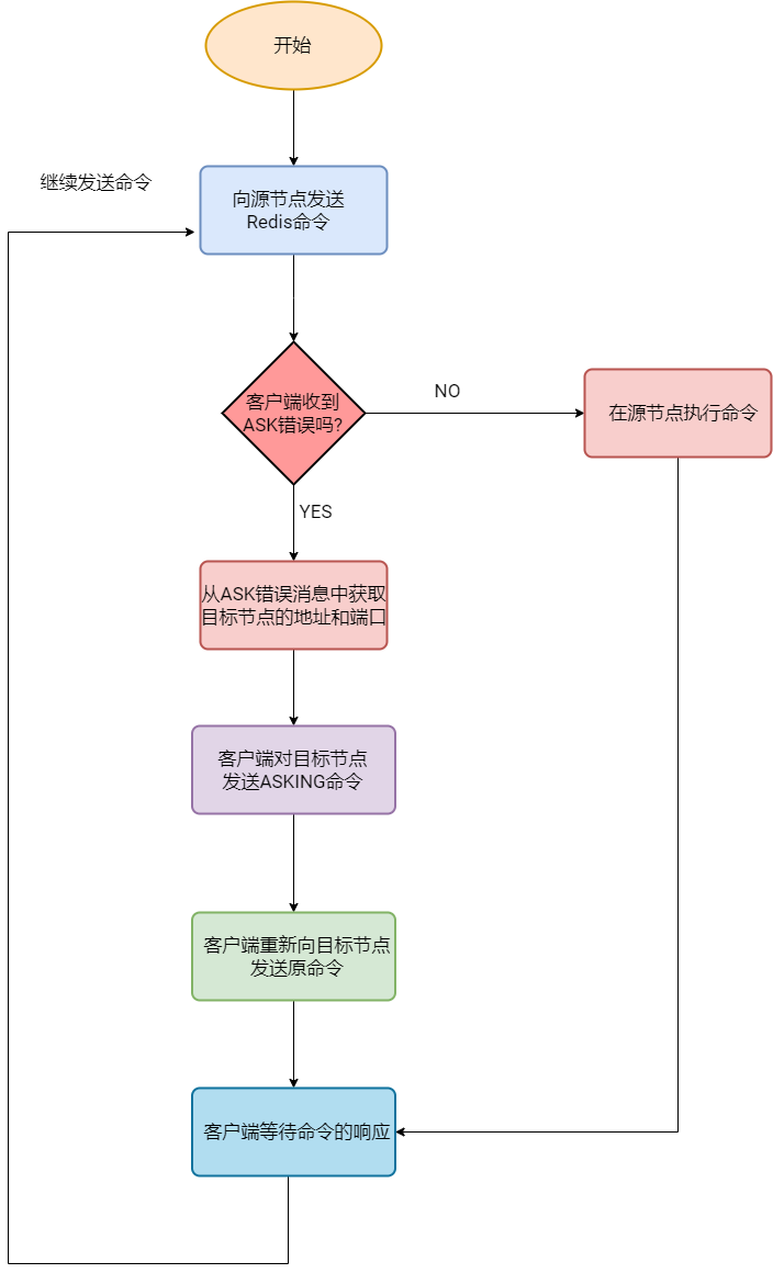 这里提个问题 :上述的第二步中,在向目标节点发送命令请求之前,客户端需要先发送一个特殊命令 ASKING,该命令有何作用?