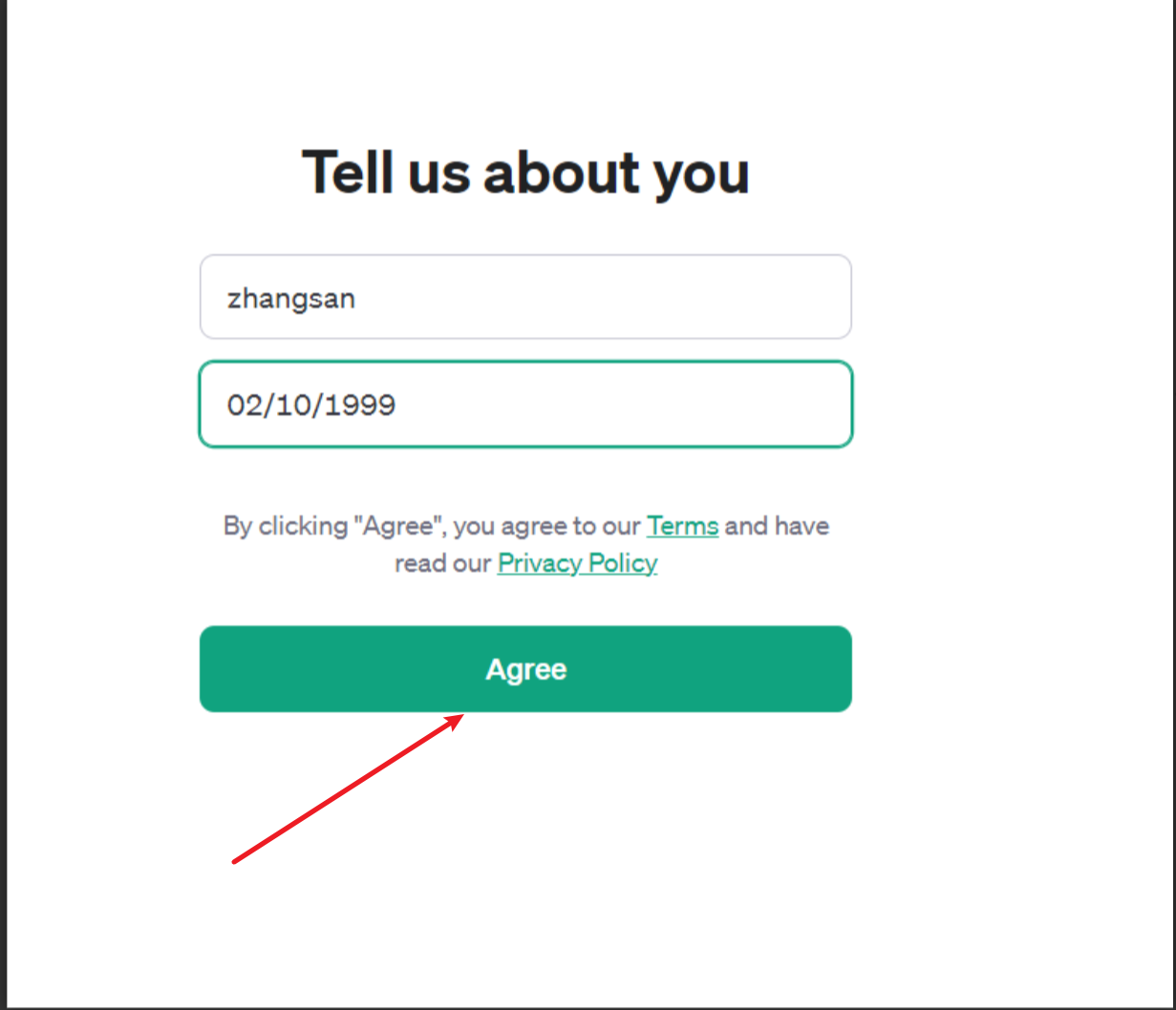 然后提供你的名和姓及生日,并点击 Agee 即可。