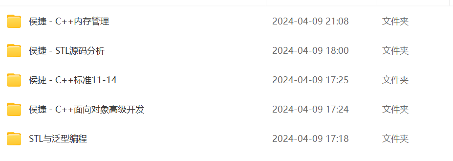 侯捷 C++ 视频系列合集,包括:C++面向对象高级开发、STL源码剖析、STL标准库与泛型编程、C++11、C++14、C++内存管理