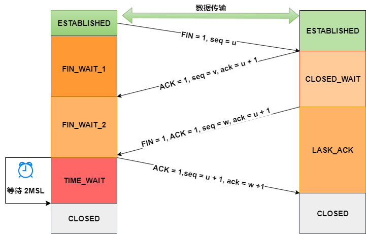 四次挥手的过程如下图: