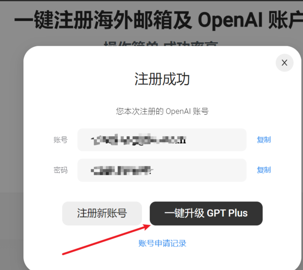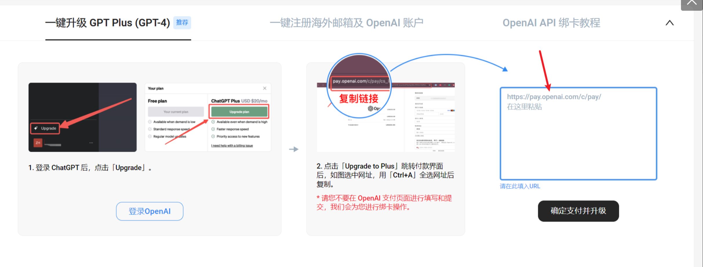 第四步: 最后点击 一键升级 GPT Plus,接着根据它的教程来完成最后一步升级操作。